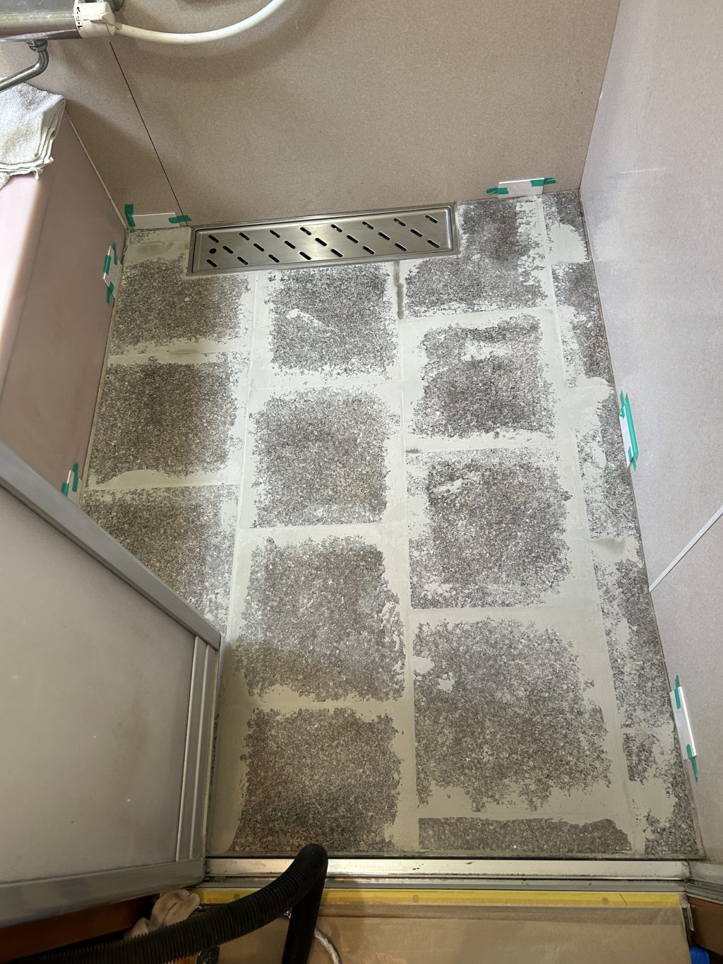 タイル浴室施工事例183 床面バスナリアルデザイン貼り
