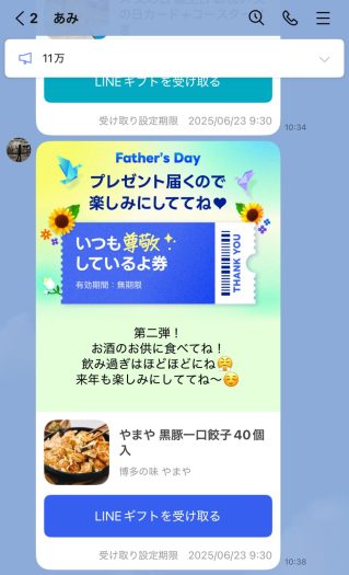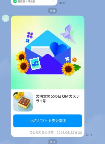 長女と次女は県外にいるので、LINEギフトで送ってもらい、三女は好物の甘いものをもらいました。